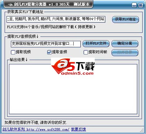 FLV文件分离成视频和音频很好理解,比如看到一个FLV视频 想单独欣赏背景音乐,那么这工具就用的着了 它就是专门剥离视频和音频。