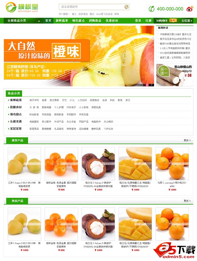 绿色果蔬商城ecshop模板适用于ecshop272/ecshop273版本,模板文件为utf-8编码。