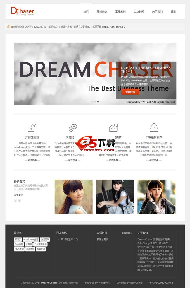 wordpress简白企业模板是一款适合企业站以及工作室网站使用,首页幻灯十分大气视觉感强,代码简洁,运行速度快,特别适于二次开发。