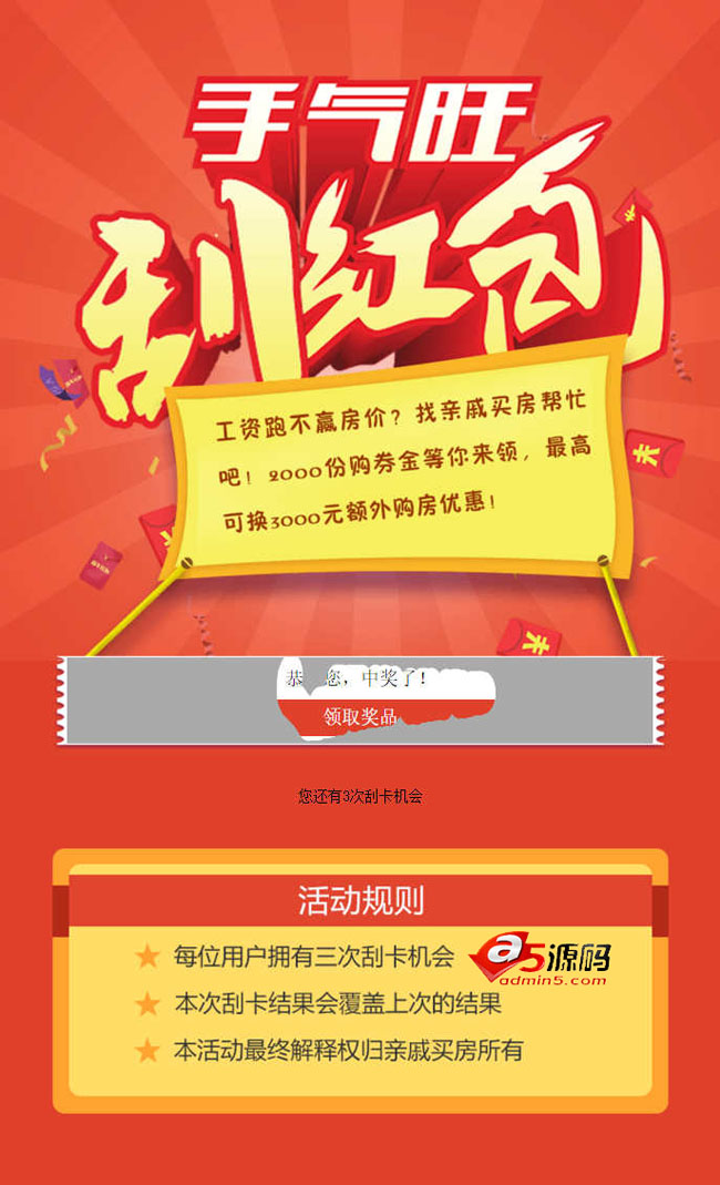 1.每一位用户有三次刮刮卡的机会