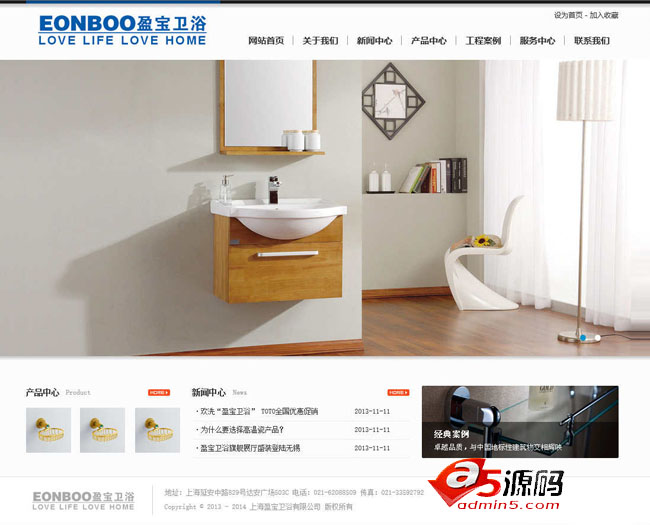 简单卫浴洁具品牌官网模板,全套模板,包括首页、关于我们、新闻中心、产品中心、工程案例、服务中心、联系我们等多个网站模板页面。