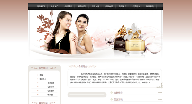 靓丽的美容养生会所网站模板,适合美容美妆相关企业使用。