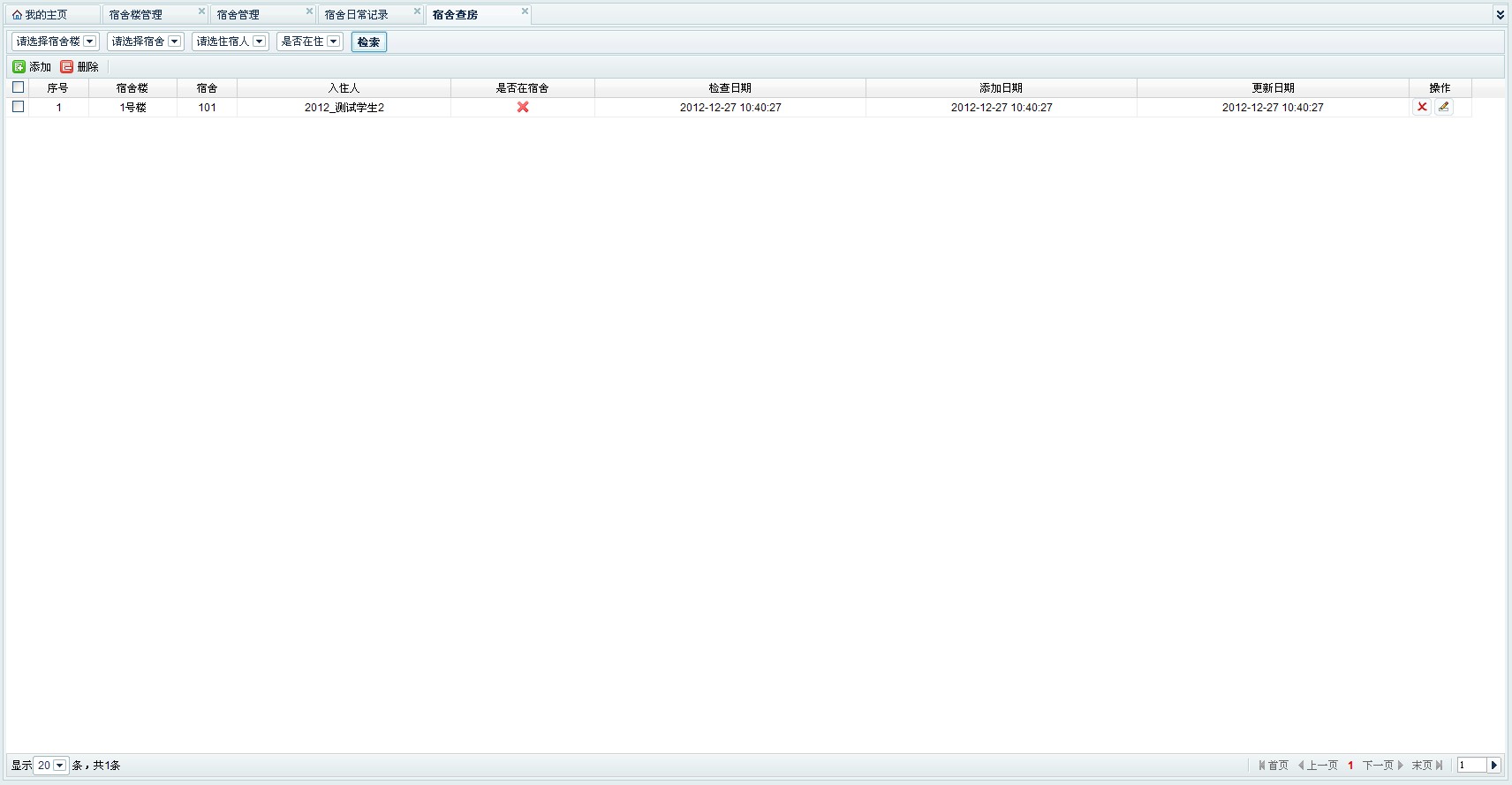 2)宿舍管理:宿舍的维护,宿舍入住情况的维护。