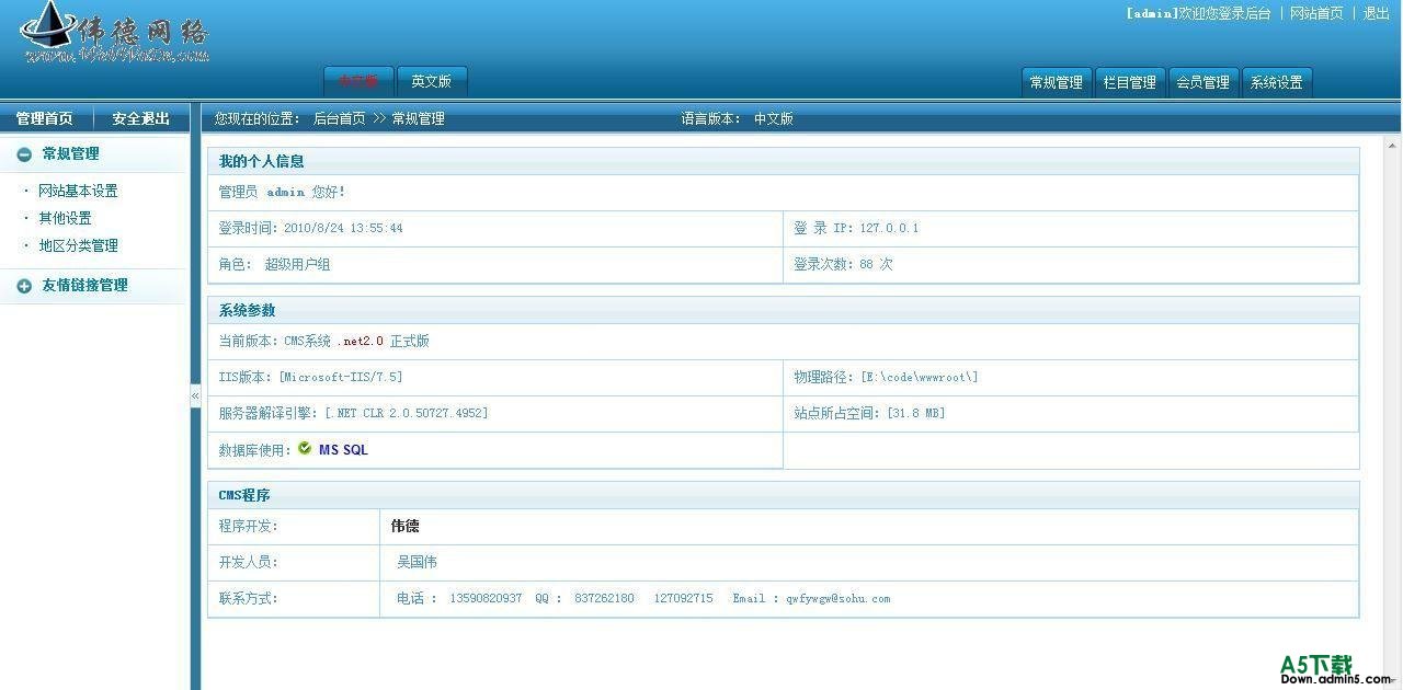 WebWaDe V1.1是一款采用.Net2.0平台,C#语言编写,数据库沿用当前应用最为广泛的SQL2000来架构的多功能CMS网站管理系统。网站结构清晰,操作简便,力求用户使用过程中,做到尽可能的操作简化。