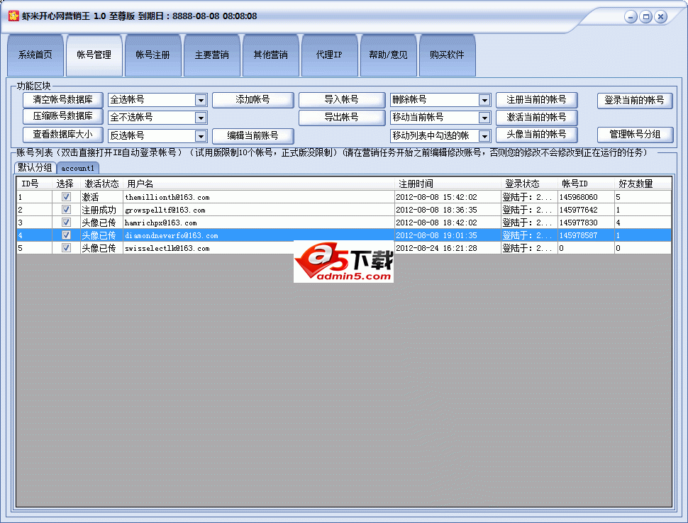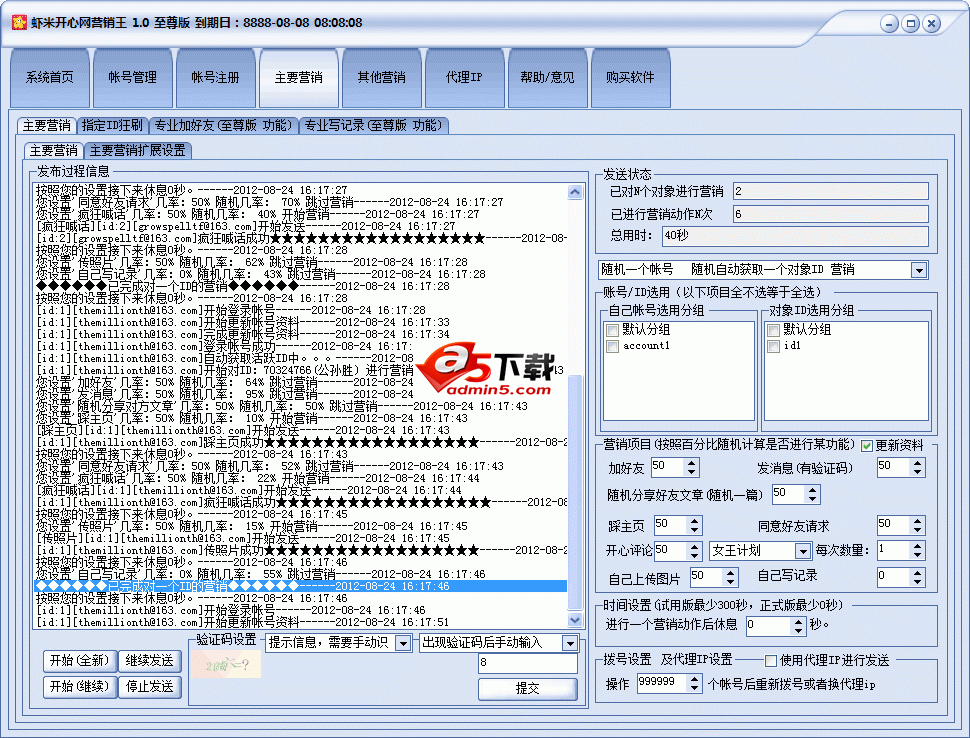 虾米开心网营销王 软件界面部分截图。