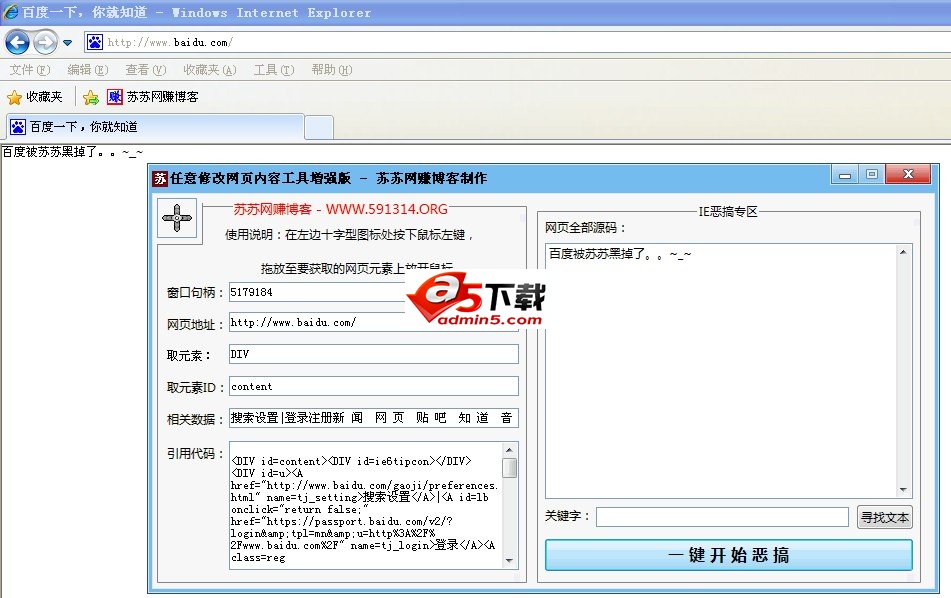 利用IE接口,就可以轻易的修改网页内容,达到恶搞的目的!