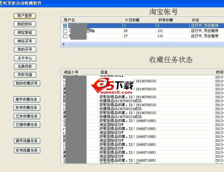 你添加的淘宝小号其收藏夹已经满了(收藏夹上限是1000个),无法再进行收藏了,客户端启动时不运行这些小号,请绑定新小号继续工作。