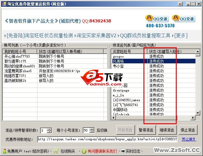 淘宝优惠券批量派送软件是智者软件出品的一款支持给任意淘宝会员派发优惠券的全自动优惠券派发工具,使用派券宝派发优惠券,优惠券会自动发送到淘宝会员的【我的优惠卡券】里,然后买家就会直接看到您的的店铺和宝贝信息,以此来快速提升店铺流量和销量。(每个旺旺小号每天可以派发50个优惠券)