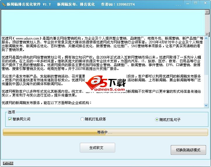 新闻稿发布后,如能在百度获取理想的排名(排名在第一页),效果将更加显著。优渡网(www.uducn.com)推出的《新闻稿排名优化软件》正是一款方便从事新闻稿营销工作人群的必备工具。可快速提高新闻稿排名。达到搜索关键词时,在第一页能出现您发布的新闻稿件。