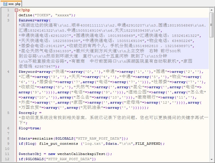 微信自动回复管理生成器可以管理多个问题,每个问题可以有多级关键词,总问题不限。最后问题可以生成一个php文件,上传到自己的空间,然后就可以在微信中开启开发模式,调用这个文件,就可以达到自动回复的功能。