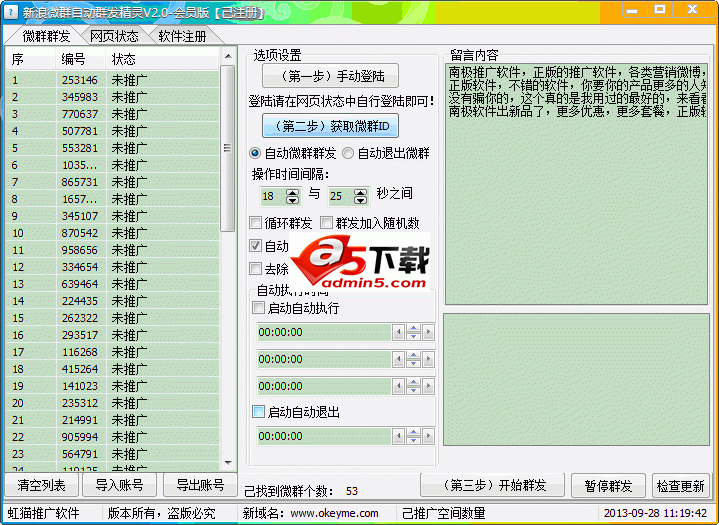 1、自动循环群发信息;