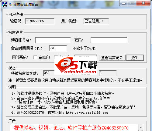 新浪博客自动留言是一款能够自动给其它博客添加你博客的留言,以推广你的博客的软件。