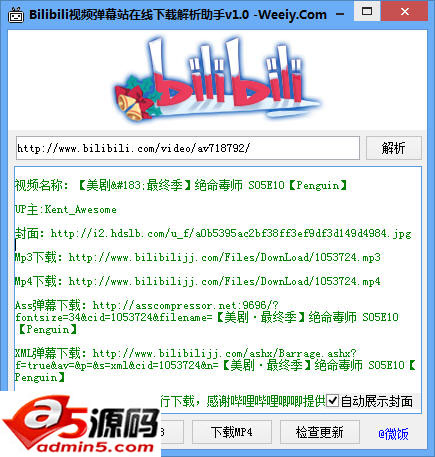 Bilibili视频弹幕站在线下载解析助手是一款解析b站视频真实下载地址的工具,如果你在b站看到一个非常不错的视频并想将其下载保存的话可以利用这款工具直接解析播放地址得到其真实的下载地址,这样就可以直接下载了。