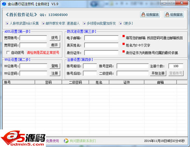 酋长金山通行证注册机是一款专业好用的全自动注册金山帐号软件。软件功能强大,小巧实用,全自动填入相关信息进行注册。软件界面美观简洁、简单全面、实用方便,无需培训,即可快速上手,轻轻松松完成日常全自动注册金山帐号功能,真正做到简单全面实用。是用户实现全自动注册金山帐号功能的好帮手。