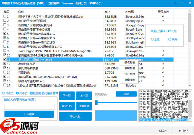 零视界115网盘礼包获取器是一款可快速获取115礼包码,无需进入网盘,双击即可自动接收礼包,支持验证礼包码是否有效,支持批量导出礼包码,支持获取指定页的礼包码,支持指定资源的自定义搜索。