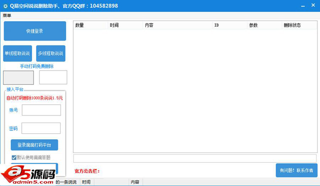 Q易空间说说删除助手无需使用QQ帐号密码登录QQ空间的软件,再也不怕软件有毒或者盗号了!可以获取说说列表,然后进行批量删除的空间辅助工具。Q易QQ说说批量删除软件可以批量快速删除QQ空间不需要的说说,这样子就不需要一条一条的删除了。
