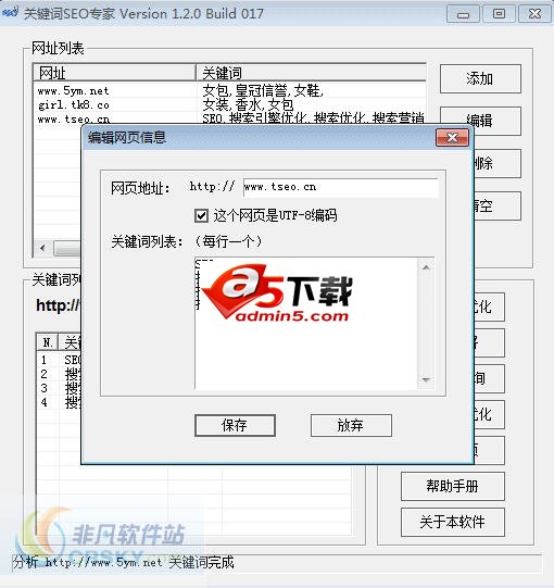 关键词SEO专家为提高百度、Google、搜狗、搜搜、Bing等的搜索排序结果提供了简单明了的参考数据,支持GB2312和UTF8、Unicode等常用的中文编码方式网页的读取;