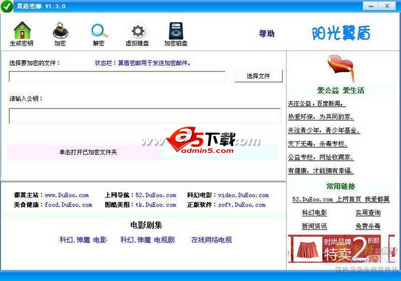 【基本介绍】 邮件加密,输入一个密码作为私钥,生成对应的公钥,任何人可以使用公钥加密文件发给你。只有使用你的私钥才能解密已加密的文件。款绿色软件,您不需要支付任何费用。 【更新日志】 V1.3.0 修复bug,新增虚拟加密磁盘。
