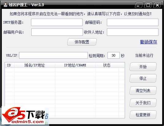 如果需要发送邮件提醒,请正确输入软件上方的邮箱配置项,如果不输入则不会发送邮件提醒。