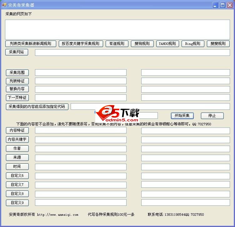 1:按用户的要求,加入了按百度关键字采集相关内容,程序里按百度关健字采集,是一个例子。照猫画虎,手动修改一下特征即可支持按搜搜关键字采集相关内容,按有道关键字采集相关内容,按yahoo关键字采集相关内容,按bing关键字采集相关内容,迅速增加自身网站的内容。