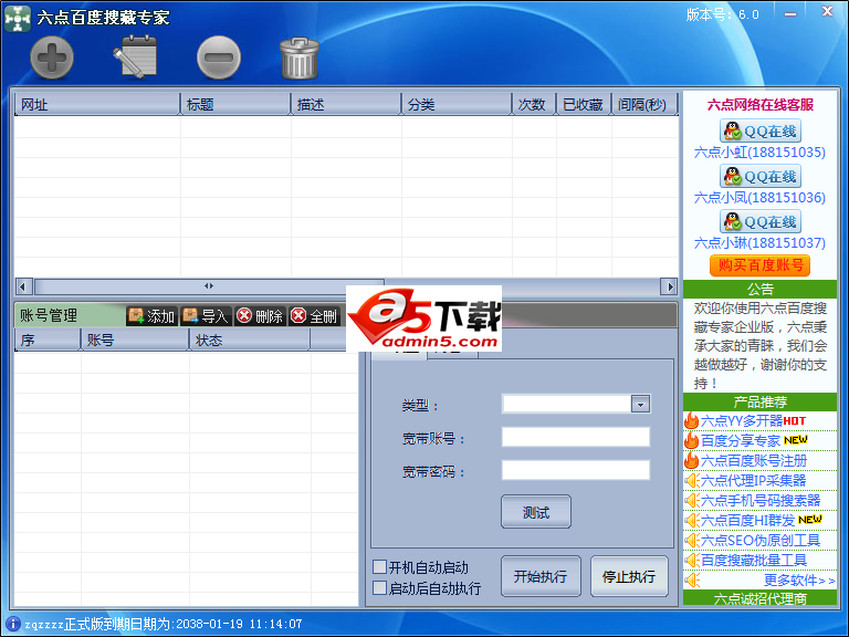 六点百度搜藏批量工具通过自动换IP,利用多个百度账号,对网址进行搜藏,从而达到增加网址外链的效果。 z'X_ s.9F