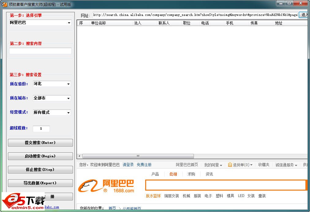 领航者客户搜索大师的服务提供商精心为您选择了我国目前最大、最活跃的大量b2b网站作为目标网站,在其企业库中搜索您需要的企业,软件既支持从单个网站中搜索,也支持同时从所有目标网站进行搜索,搜索速度每分钟150-550条之间,遥遥领先同类软件。