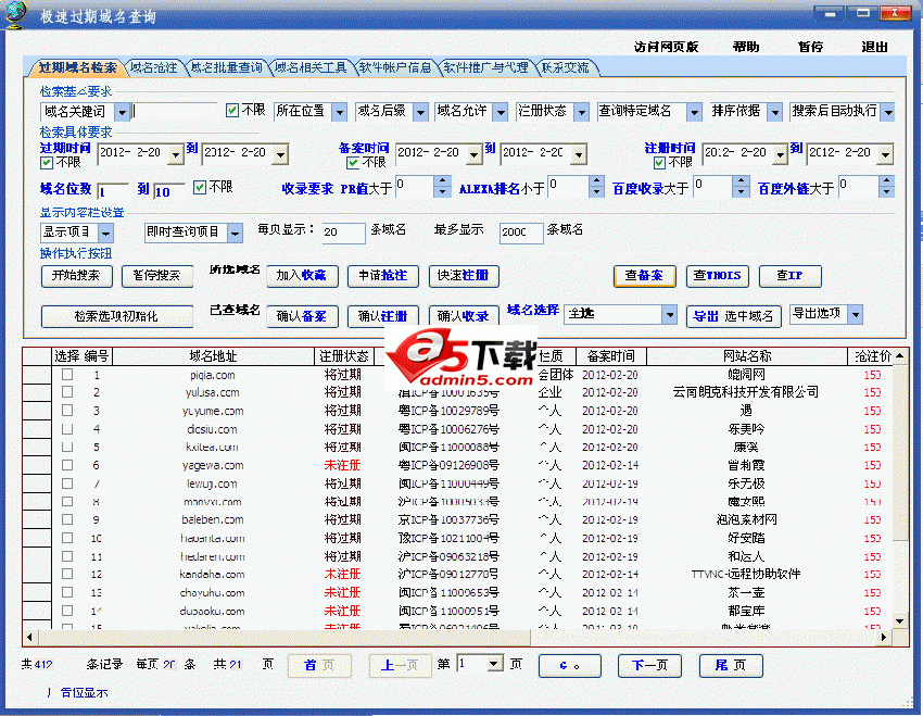 九、域名注册、收录信息服务器端定期更新,同时支持客户端即时更新。