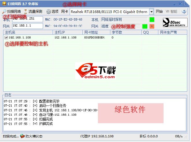 幻境网盾非常强大的局域网限速软件,原名叫Skiller,可以突破ARP防火墙,幻境网盾不是基 于ARP欺骗包原理,它集成了无ARP欺骗的上行,下行,劫持。过任意ARP防火墙。幻境网盾无需安装,解压缩即可使用,体积又是相当的小,但是麻雀虽小,五脏俱全,所以功能那是相当强大的。