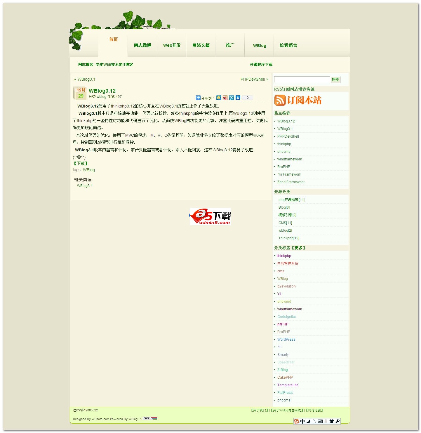 WBlog是基于thinkphp3.1.2框架开发的轻量级的PHP博客系统,倡导“大道至简,开发由我”的理念,用最少的代码完成更多的功能。本博客程序将与thinkphp官方发布的最新核心框架同步,核心与功能将不断更新与完善。目前WBlog的主要功能模块是: