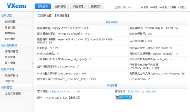 用最少的代码做更多的事情是Yxcms的设计理念。如果你现在正在被各种大型建站系统繁琐的功能而困扰,如果您的网站虽然只用得上其中很小一部分功能却不得不安装一大堆东西,面对各种复杂操作的同时还要忍受因为体积庞大而带来的运行效率低下的问题。那么这一款cms应该更加适合你的需要。完成同样的工作Yxcms会用更简洁、人性的方式去实现。