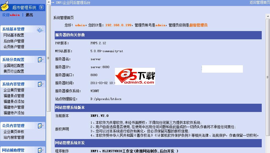 网站基本配置,会员账户管理,系统分类配置,全国地区配置,黄页行业配置,企业黄页管理,福建景点管理,福建景点添加,福建特产管理,福建特产添加,会员内容管理,企业黄页申核,站内搜索管理,网站辅助理管,,客户留言管理,友情链接管理,首页图片广告,网站广告管理,全站生成sitemap
