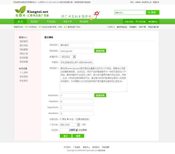 包含网站认领功能,网站管理员可以认领自己被其他人提交的网站。