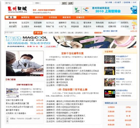 惠州同城网完整版,程序采用PHP+MySQL,-采用模板+标签技术,是一个操作简洁,简单易用的地方门户系统,支持全站生成静态的html文件。
