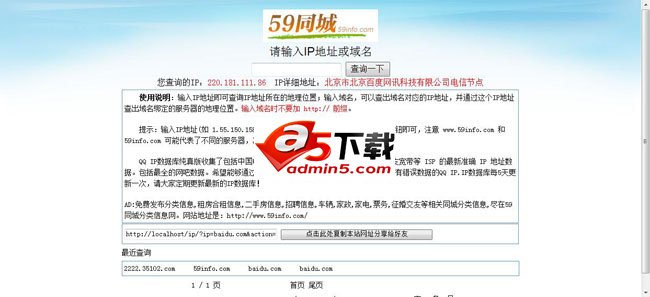 压缩包含有两个版本,《显示查询记录版本 》可以记录查询IP的记录,可以分页显示。增加SEO。记录的数据保存在当前目录的TXT文件里,可以手动删除或者修改,现在还有一点小问题 以后会慢慢更新。