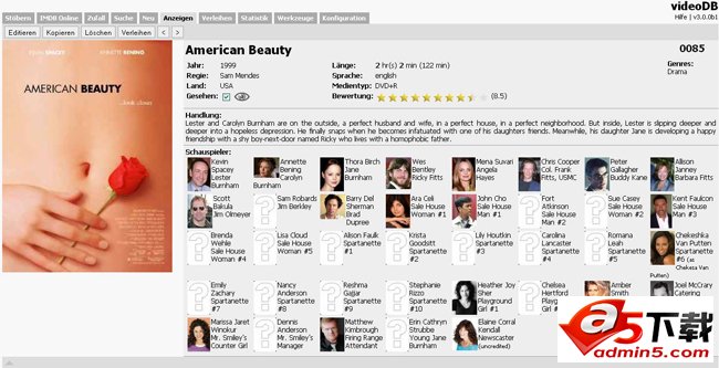 VideoDB一款用PHP开发的视频管理系统,支持硬盘上的DVD,DivX,蓝光等格式。可以从IMDB下载影片信息。