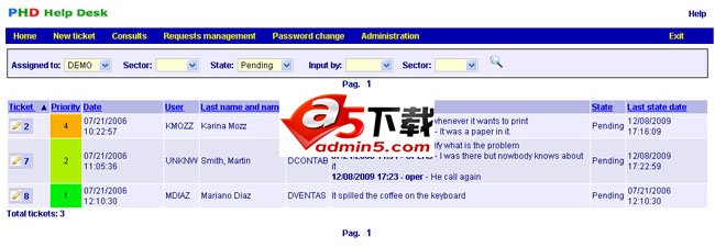 PHD Help Desk是一个采用PHP开发的在线帮助系统,具有两级的帮助问题类型,以及问题的紧急程度、描述、问题派发、历史记录、审核、报表等功能。