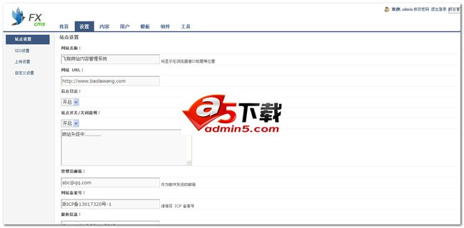 4.安装完成,后台登录地址 http://你的网址/index.php?r=admini