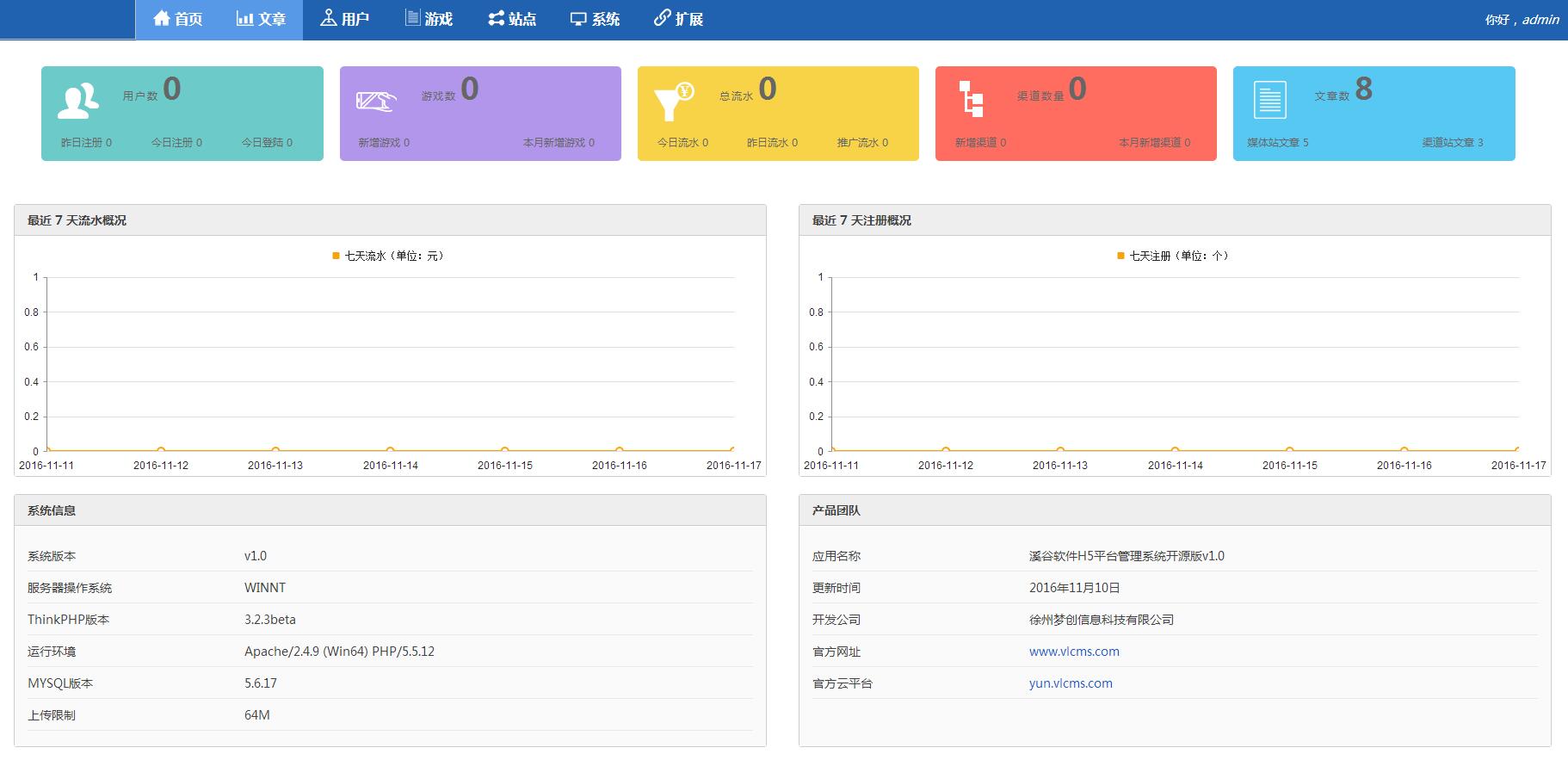 溪谷软件vlcms免费版手游平台程序是由徐州梦创信息科技有限公司旗下溪谷软件团队基于Thinkphp框架开发的一套解决手游推广的管理系统。