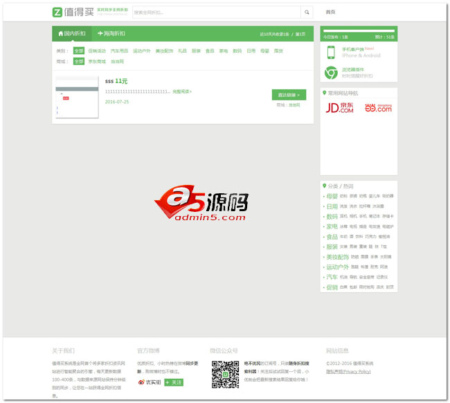 ZhiCms是一款专业的值得买系统,程序支持国内值得买海淘值得买,程序内置淘点金、以及亿起发淘金链、多麦多金链等功能。 支持国内商城海淘商城 ,程序PHP+MYSQL小巧方便,SEO性强,前台模板制作简单,是您搭建一个值得买网站的首选程序。
