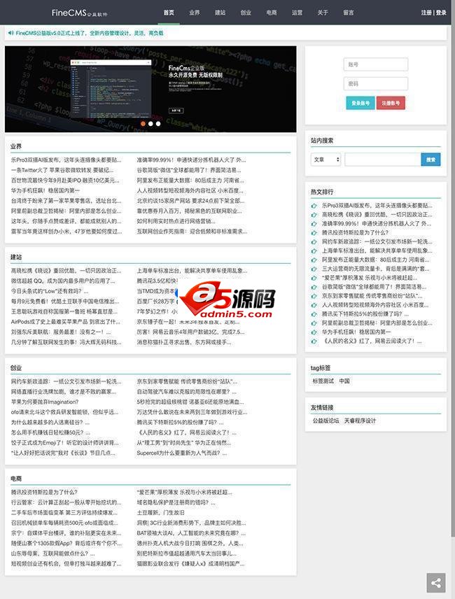 FineCMS(简称免费版或公益版)是一款基于PHP+MySql+CI框架开发的高效简洁的中小型内容管理系统,面向多终端包括Pc端网页和移动端网页,支持自定义内容模型和会员模型,并且可以自定义字段,可面向中小型站点提供重量级网站建设解决方案,适用于小型站点、企业级网站、新闻内容网站等,个人站长及中小企业的首选建站系统。