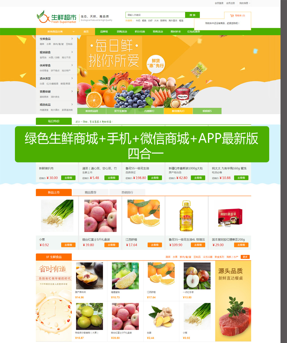 绿色生鲜商城+手机+微信商城+APP最新版是以PHP+MYSQL进行开发的四合一商城源码