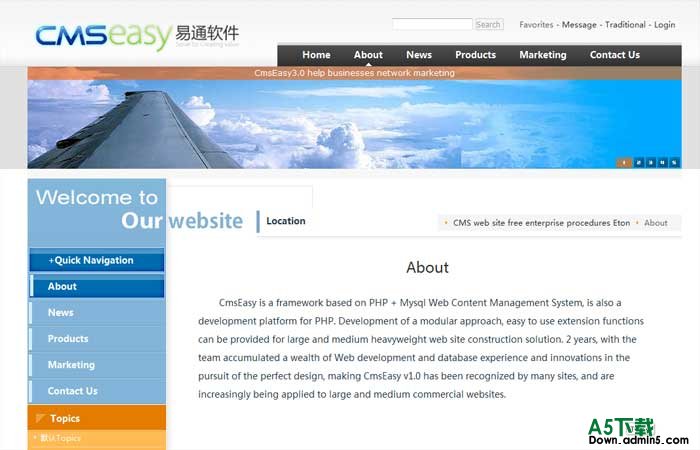 易通企业网站系统是九州易通科技开发的中国首套免费提供模板的营销型企业网站管理系统,系统前台生成html、完全符合SEO、同时有在线客服、潜在客户跟踪、便捷的企业网站管理、搜索引擎推广等功能。