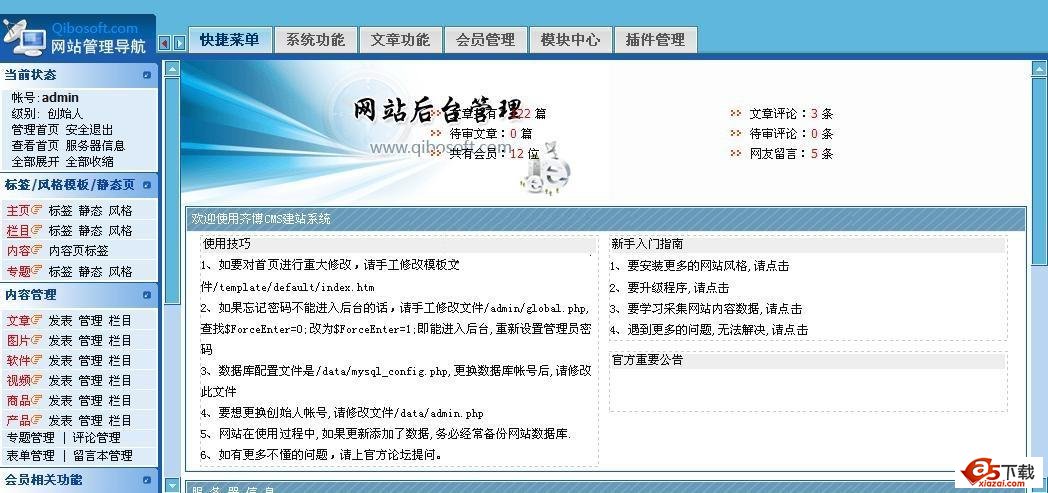 齐博CMS系统,原PHP168整站系统是国内开源CMS系统中较全面的产品,提供了包括文章、图片、下载、商场、内置专题、订单、考试等多种模块,适合二次开发,此外用户可以在后台对页面进行可视化标签调用。模板制作较简单,但后台较为复杂。