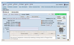 Campsite是一个web发布系统,它能帮你将报纸和杂志上的内容搬到互联网上. Campsite经常被那些同样拥有印刷版形式的出版物的媒体和杂志社所使用.它能够通过在线订购和ads为媒体和杂志社增加收入 , . 市面上有很多与 Campsite类似的系统,但它是唯一的一个遵循报纸和杂志出版样式的开源系统例如:它可以含有多个新闻记者,编辑者评论版块,发布话题版块,-订阅管理.