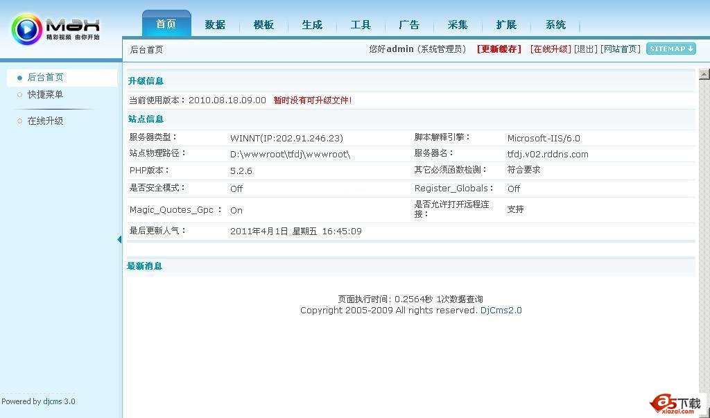 DJCMS是一套采用php+mysql架构的CMS系统,凭借100%完全开源、永久免费、功能强大、安全健壮、性能卓越、超级易用、模板众多等诸多优势、深得中国互联网广大站长的一致好评,已完全成为互联网程序的领头羊。