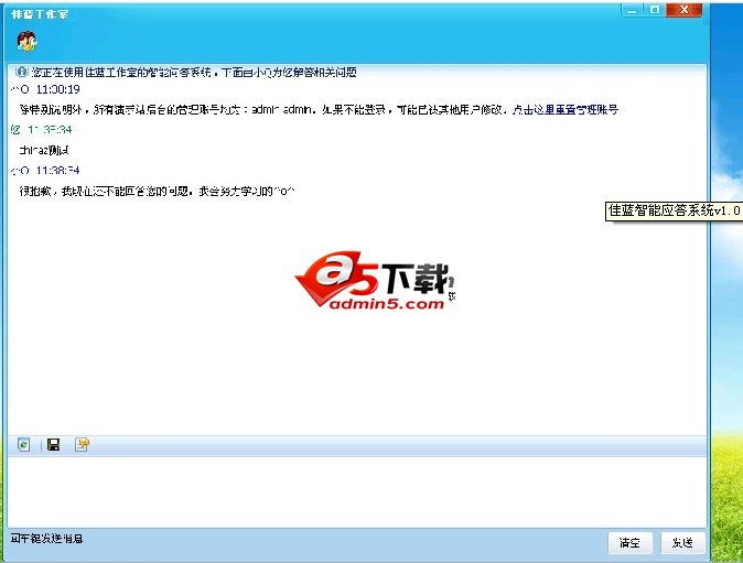 类似智能机器人程序,以聊天对话框的界面显示,通过输入问题、或点击交谈记录中的超链接进行查询,从而获取访客需要了解的资料等信息。系统自动保留用户访问信息及操作记录。后台有详细的设置和查询模块。