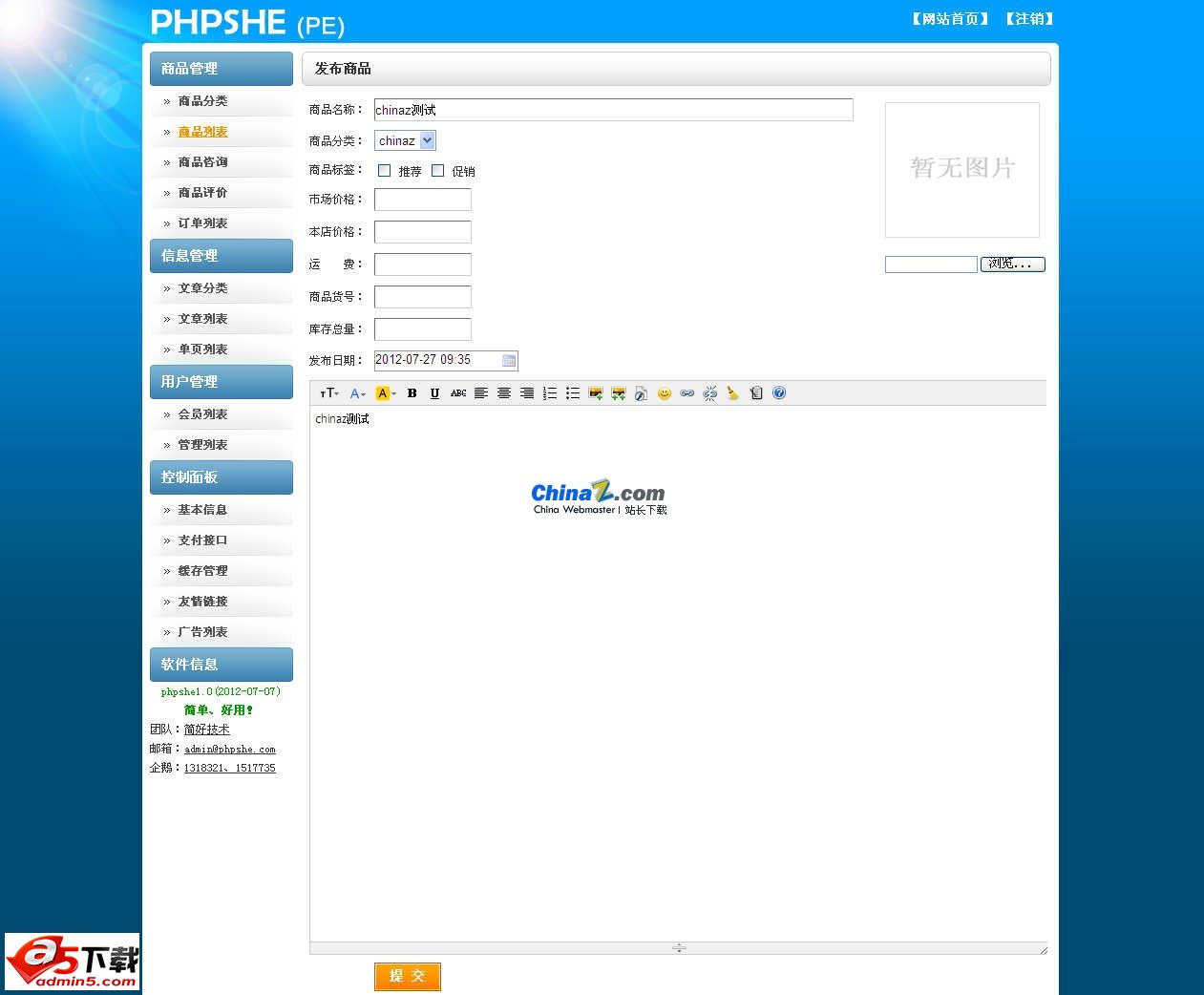 (9)网站文章分类、单页信息、推荐商品、促销商品等。