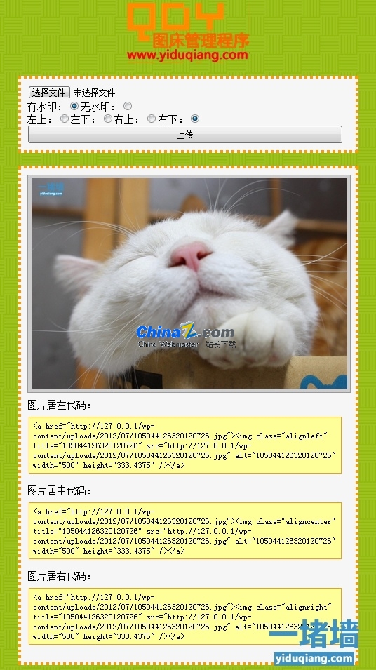 这款图床程序,有自动匹配图片相对大小(不压缩图片,代码调整大小)、自动生成图片嵌入代码等等功能,亮点自然是支持自由位置的添加水印。