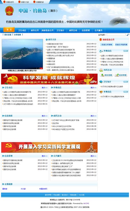 在伟大祖国63年华诞即将到来之际,AKCMS发布了AK政府网站系统。AK政府网站系统基于AKCMS引擎构建,继承了AKCMS灵活、小巧、速度快、负载强、安全稳定等优点,针对政府网站的特点进行了专门的优化。