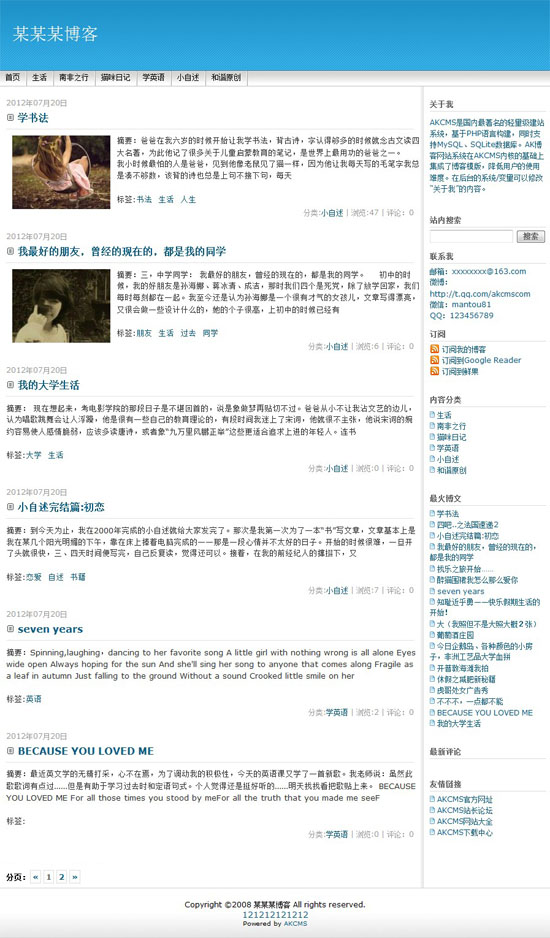 AKCMS是个人博客系统一款免费的轻量级CMS,仅仅340K,但是功能强大: